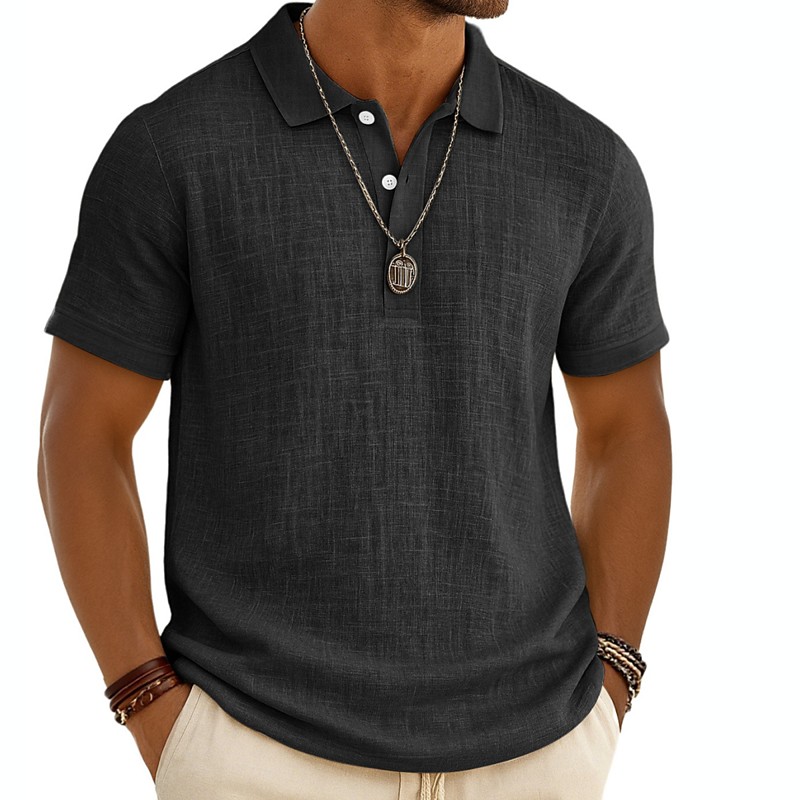 Men's Waffle Polo Shirts Quarter Zip Polo Daily Holiday Lapel Short Sleeve Fashion Basic Plain Jacquard Summer Regular Fit Black White Khaki Light Grey Army Green Waffle Polo Shirts