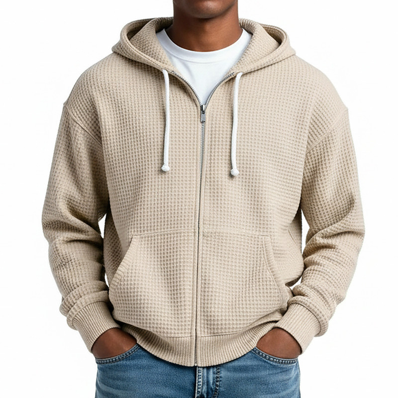Men's Hoodie Waffle Hoodies Quarter Zip Hoodie White Light Green Army Green Red Navy Blue Hooded Plain Kangaroo Pocket Textured Sports Outdoor Casual Daily Streetwear Cool Sportswear Fall Spring