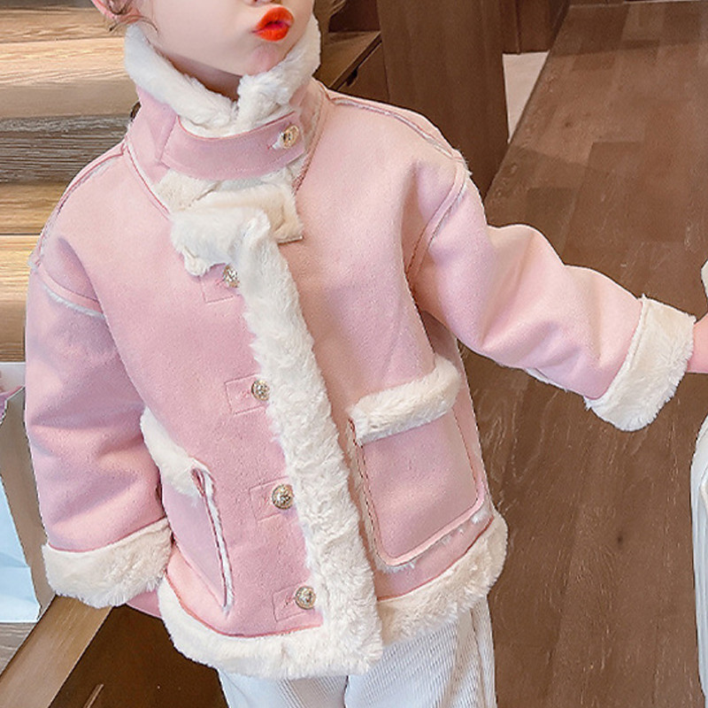 Kids Girls' Faux Suede Jacket Fleece Jacket Jacket Solid Color Fashion Pocket Keep Warm Windproof Outdoor Coat Outerwear 4 years Fall Pink Coffee