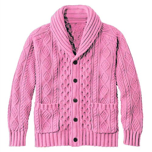Per uomo Felpa Cardigan Treccia Maglia Top Regolari Cardigan con Bottoni Semplice Collo a scialle Vacanza Moda Casuale Abbigliamento quotidiano Abbigliamento Primavera Autunno Rosa Rosa S M L