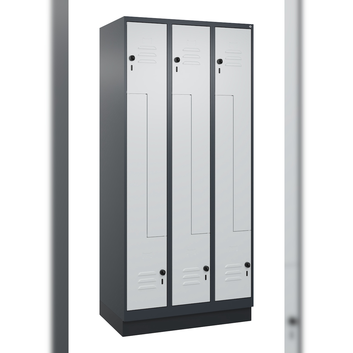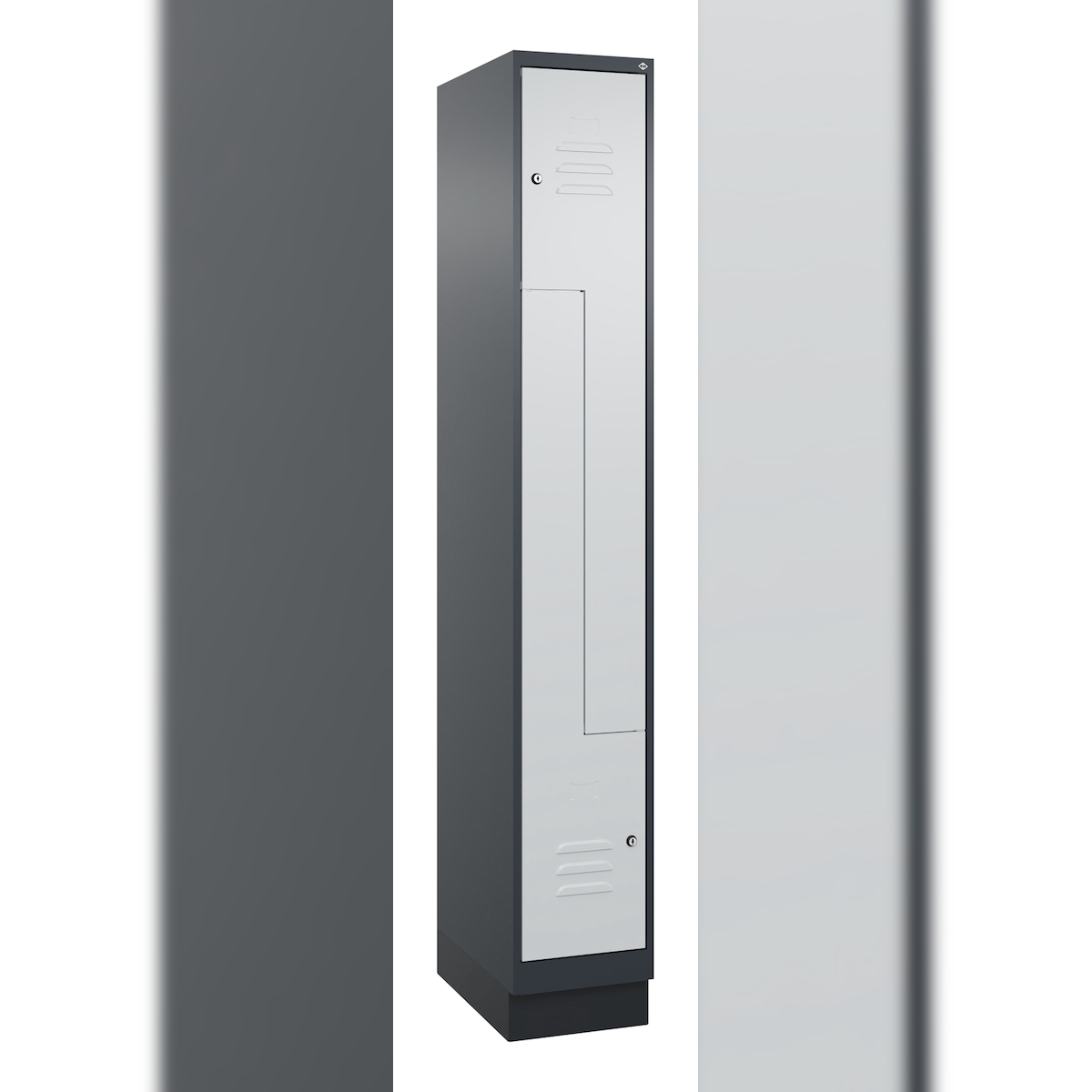 C+P Z-Spind Classic PLUS, Sockel, 2 Abteile, HxBxT 195x30x50cm, Zylinderschloss, Anthrazit/Hellgrau von PROREGAL