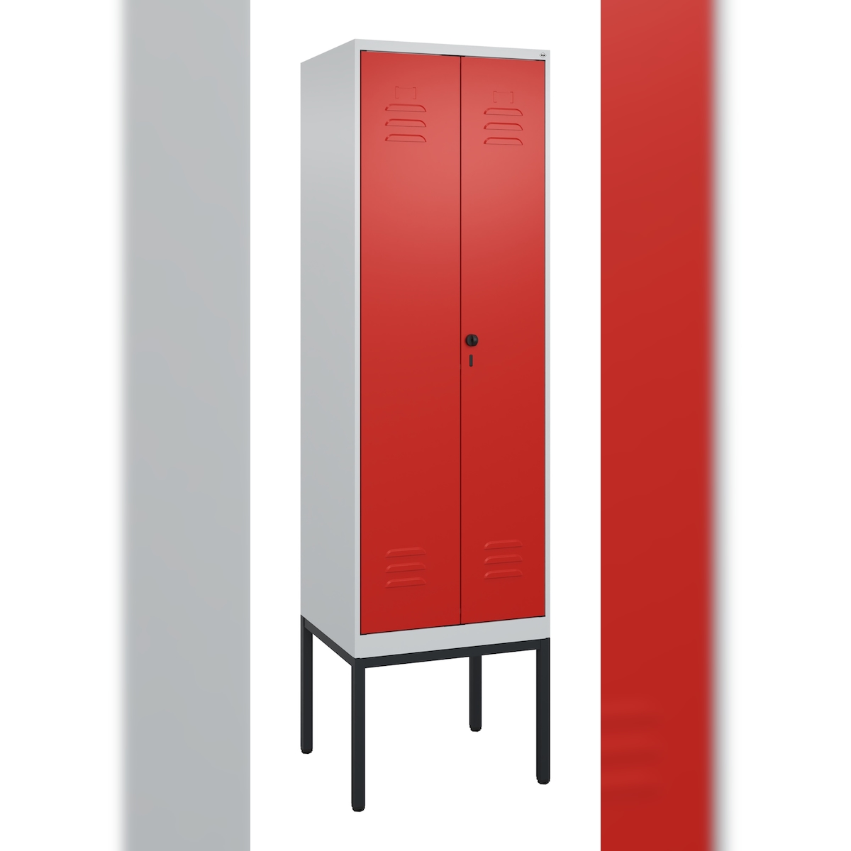 C+P Doppel-Spind Classic PLUS, Gestell, 2 Abteile, HxBxT 212x60x50cm, Sicherheitsdrehriegel, Hellgrau/Rot von PROREGAL