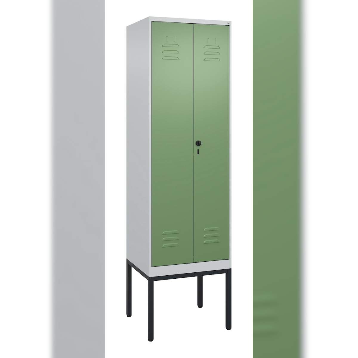 C+P Doppel-Spind Classic PLUS, Gestell, 2 Abteile, HxBxT 212x60x50cm, Sicherheitsdrehriegel, Hellgrau/Resedagrün von PROREGAL