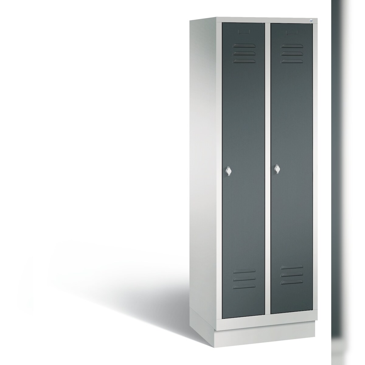 C+P Spind Classic mit Sockel | 2 Abteile | HxBxT 180x30x50cm | Lichtgrau/Anthrazit von PROREGAL