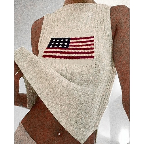 Per donna Felpa Gilet Vintage Moda Streetwear Tinta unica Girocollo Lavorato a maglia Stampato Senza Maniche Top corti Maglia Quotidiano Ferie Uscire Beige Estate Autunno