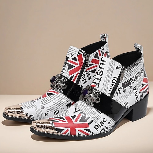 stivaletti da uomo con stampa Union Jack: stivali alla moda con audace design della bandiera britannica, ideali per uscite informali e per uno stile distintivo