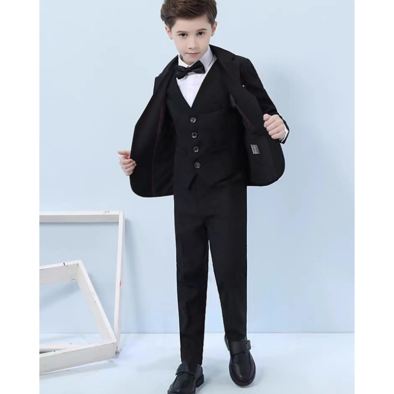 5 Pieces Ring Bearer Suit Boys' Kids Suit Blazer Vest Pants Shirt Tie Boy's Formal Suit Casual Outdoor Party Fashion Cool Basic Solid Color Pocket Buttons Black Navy Blue Polyester