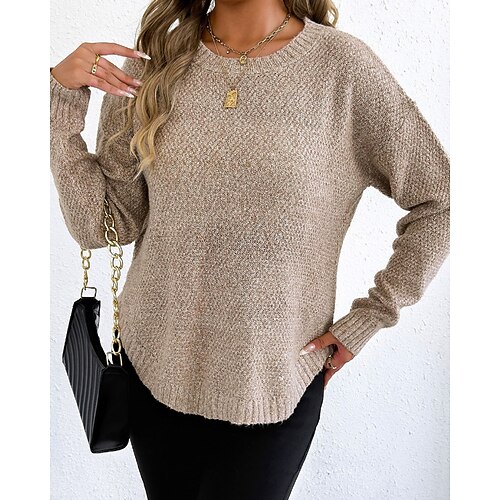 Per donna Felpa Maglione Streetwear Casual Tinta unica Girocollo Lavorato a maglia Manica Lunga Top Regolari Maglia Ferie Uscire Weekend Nero Vino Autunno Inverno