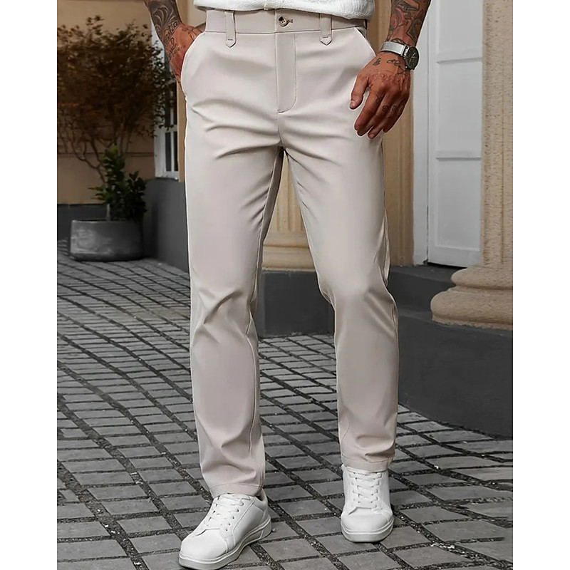 Men's Dress Pants Trousers Chinos Buttons Pocket Plain Comfort Formal Party Work Fashion Classic Style Black White Micro-elastic