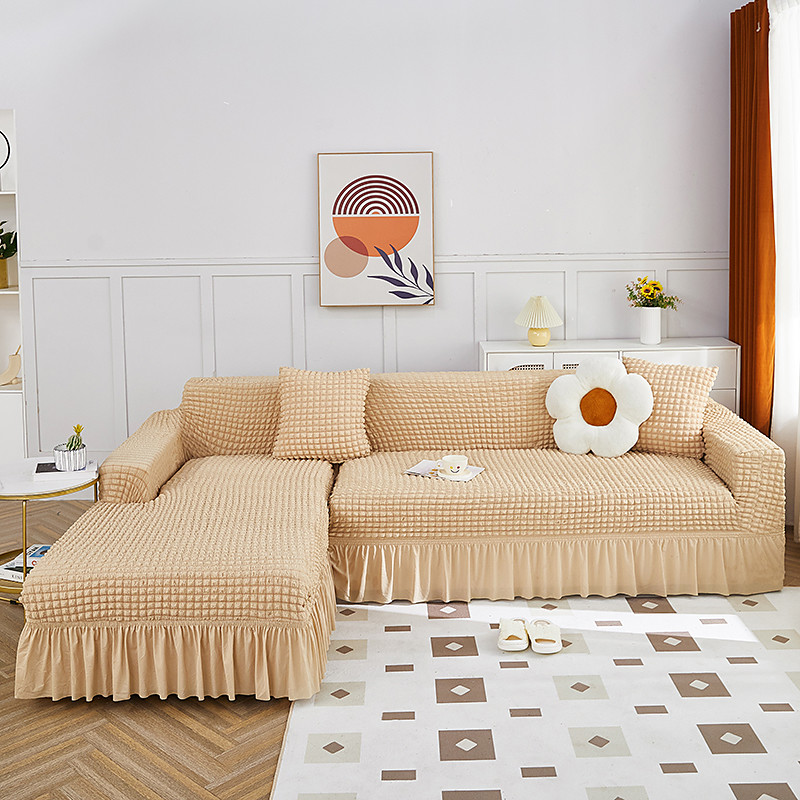 Stretch Sofa Cover Slipcover Jacquard Elastic Sectional Couch Armchair Loveseat 4 or 4 or 3 Seater Burgundy Red L Shape White Grey Black Plain Solid Color Soft Durable Washable(1 Free Cushion Cover)