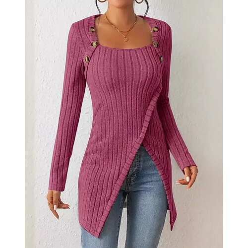 Damen Pullover Lässig Einfarbig Quadrathals Gestrickt Geteilt Langarm Lange Oberteile Stricken Täglich Ferien Ausgehen Schwarz Fuchsie Frühling Herbst