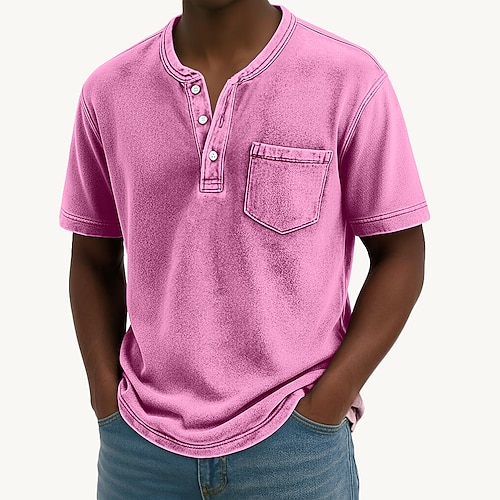 Per uomo Maglia Henley Camicia 100% cotone lavaggio acido Maglietta Manica Corta Tinta unita Retrò Vintage Casual Stile Vintage Lavato Henley Casuale Estate Primavera Autunno Nero Rosa Grigio