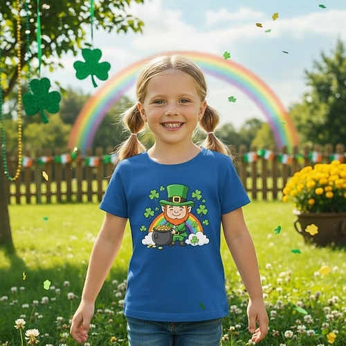 100% Cotone Giorno di San Patrizio Bambini Ragazze Blu Nero Bianco Grafico Trifoglio Giorno di San Patrizio Maglietta Girocollo Manica Corta Vacanza Sport Outdoor Abbigliamento Quotidiano Vacanza
