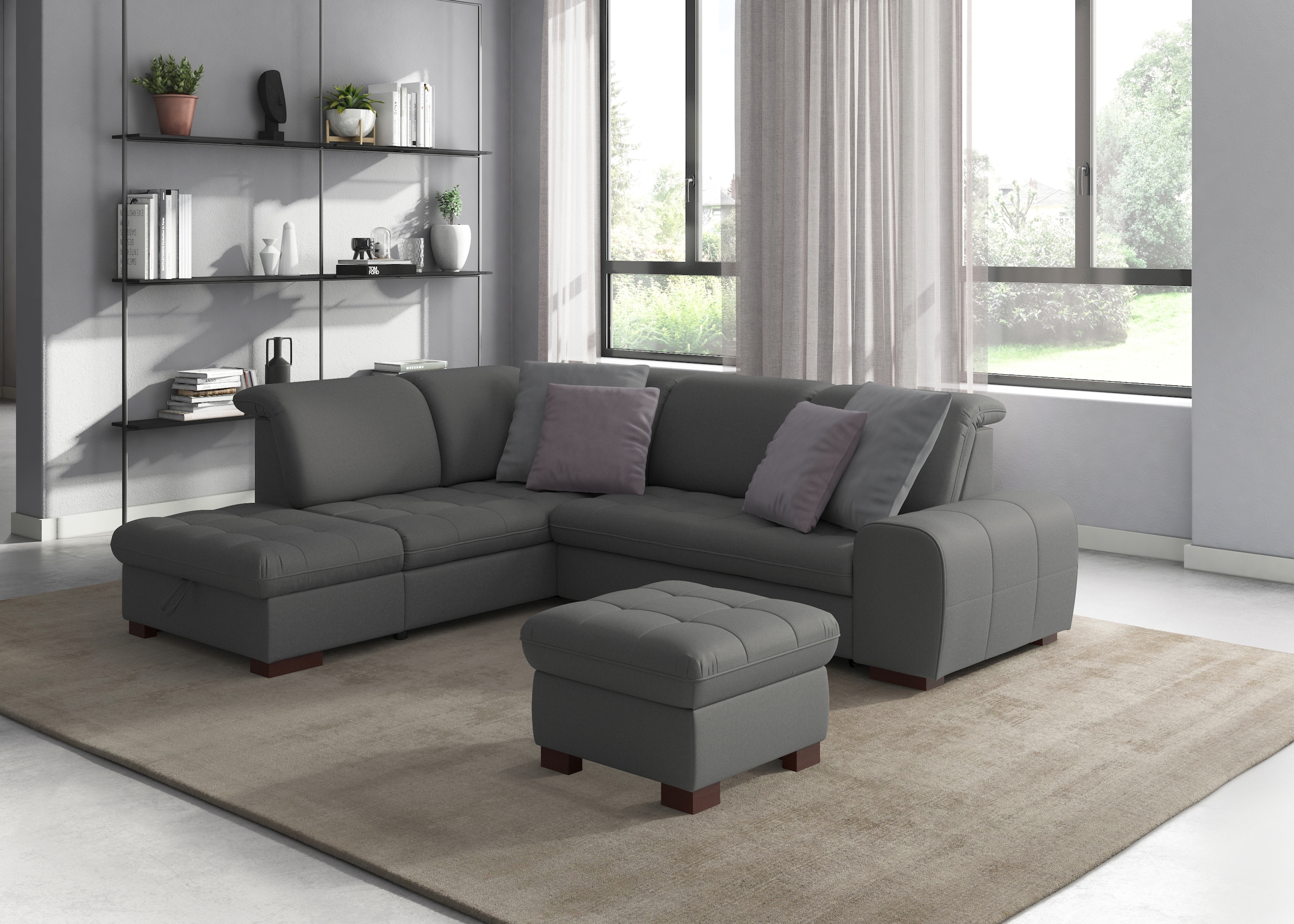 Ecksofa SIT & MORE "Luxor L-Form", grau (steel), B:259cm H:82cm T:224cm, Luxus-Microfaser ALTARA NUBUCK (100% Polyester);Soft clean (98% Polyester, 2% Polyamid);Struktur fein (100% Polyester), Sofas, wahlweise mit Bettfunktion, Stauraum und...