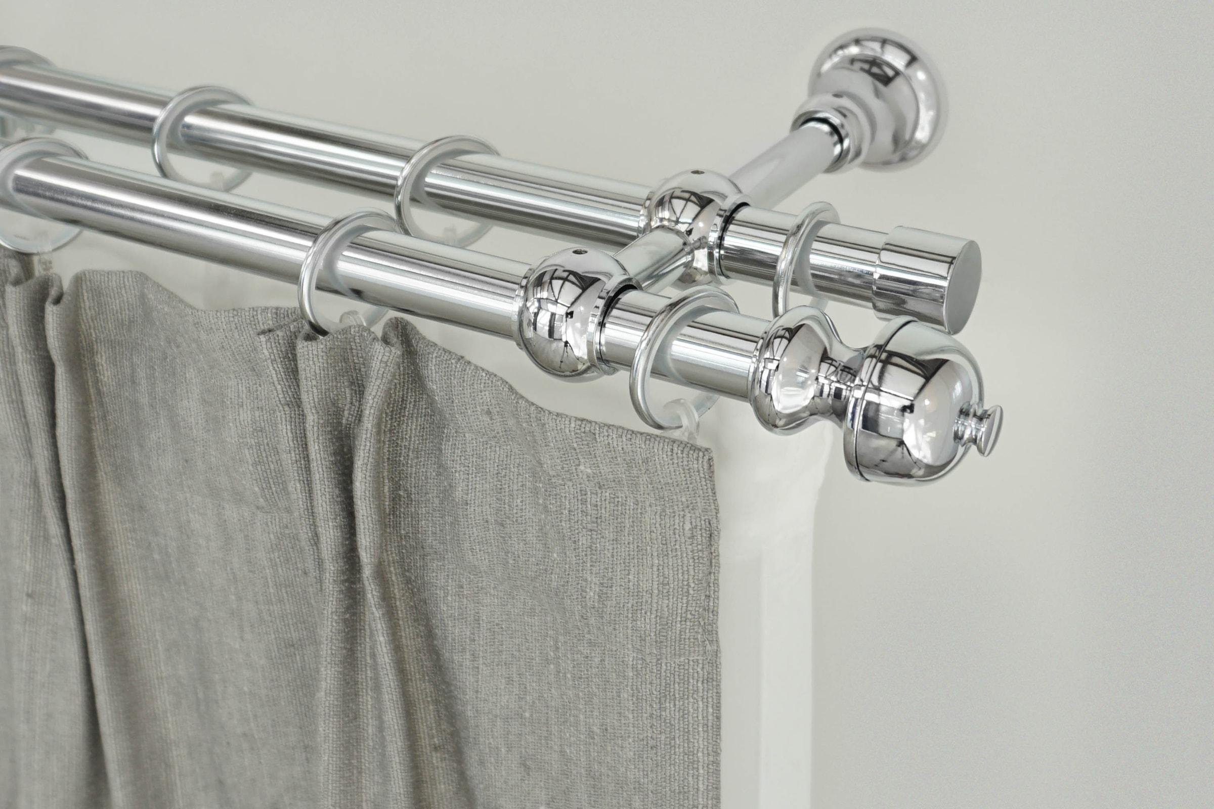 Gardinenstange GARESA "ANDREA", grau (chromfarben), L:390cm Ø:20mm, Metall, Gardinenstangen, Vorhanggarnitur, verlängerbar, Endknopf Profil klein, mit Ringen