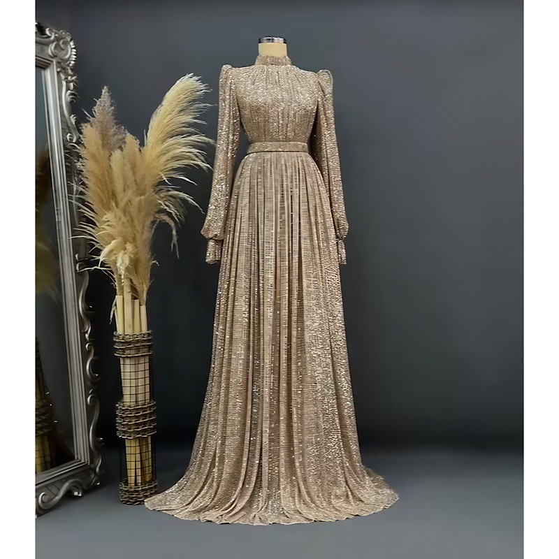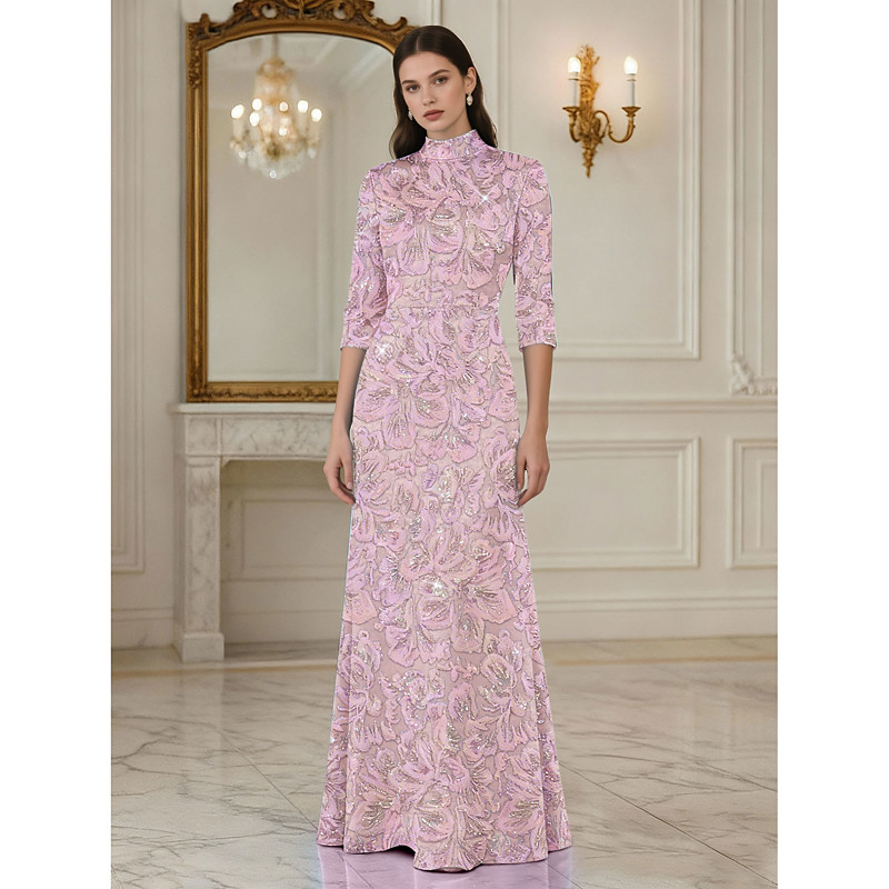 A-Line Floor Length Beaded Eembroidered Formal Dresses Mother of the Bride Dress Evening Gown Ball Gown Formal Dress Elegant Glittering Long Sleeve High Neck Wedding Formal Pocket Satin Lace with