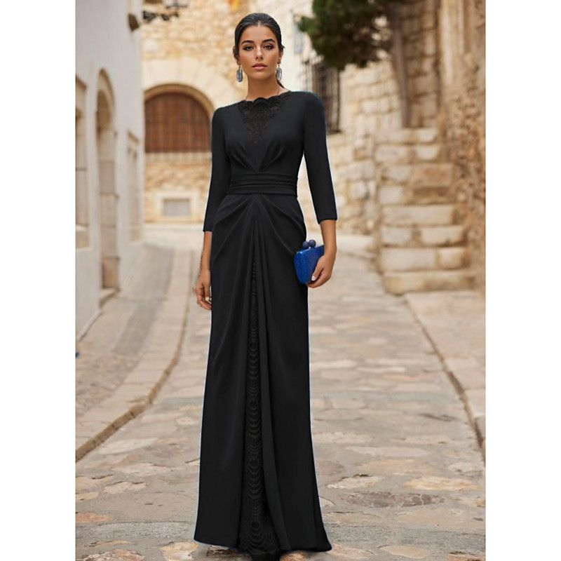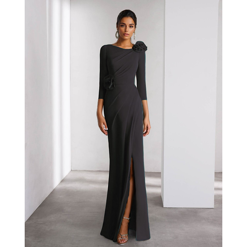 Sheath Column Floor Length Prom Dresses Evening Gown Ball Gown Formal Dress Elegant Long Sleeve V Neck Formal Wedding Guest Black Dress Stretch Fabric with Slit