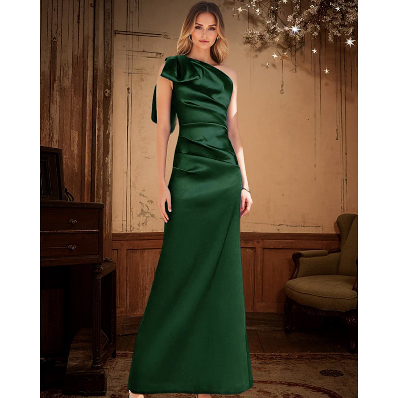 Mermaid Trumpet Floor Length Prom Dresses Evening Gown Ball Gown Formal Dress Elegant Celebrity Style Sleeveless One Shoulder Garden Party Wedding Satin with Bow(s) Pleats Ruched