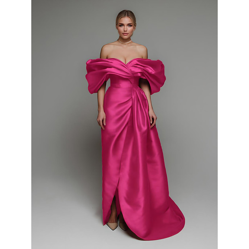 Sheath Column Floor Length Evening Gown Ball Gown with Overskirt Formal Dress Elegant Party Half Sleeve Off Shoulder Formal Wedding Guest Overskirts Satin with Ruching