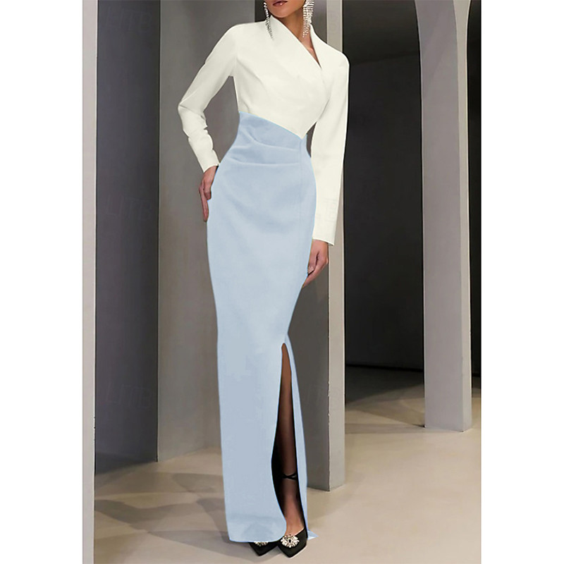 Sheath Column Floor Length Beaded Eembroidered Formal Dresses Mother of the Bride Dress Evening Gown Ball Gown with Overskirt Formal Dress Elegant Vintage Color Block Long Sleeve Shirt Collar Wedding