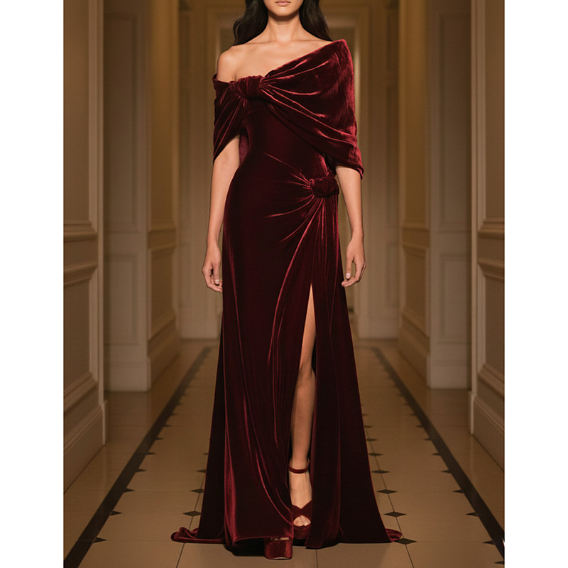 Sheath Column Floor Length Prom Dresses Evening Gown Ball Gown Formal Dress Elegant Silky Sleeveless Off Shoulder Wedding Formal Capes Velvet with Shawl