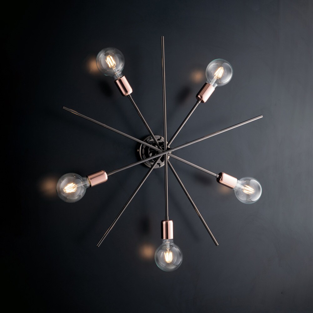 Bonetti Illumina - Bloom - Deckenleuchte aus Eisen, Chrom, Schwarz und Kupfer, 5 Lichter, H.22 - Ø65 - BL200-PL5-NR