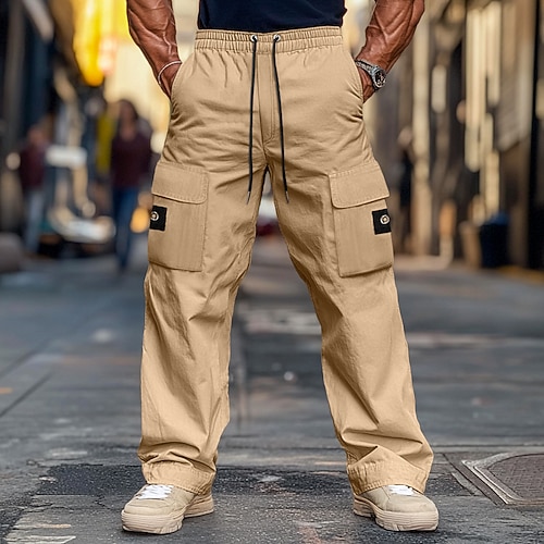 Per uomo Pantaloni cargo Pantaloni Pantaloni casual Tasche Vita elastica Gamba dritta Liscio Comfort Morbido Lunghezza intera Esterno Giornaliero Per uscire Di tendenza Streetwear Nero Verde militare