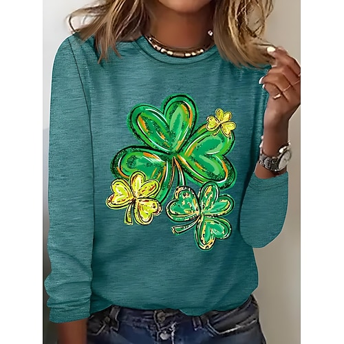 T-shirt donna di San Patrizio shamrock piante casual maniche lunghe girocollo top normali stampa quotidiana nera bianca rosa blu khaki estate primavera