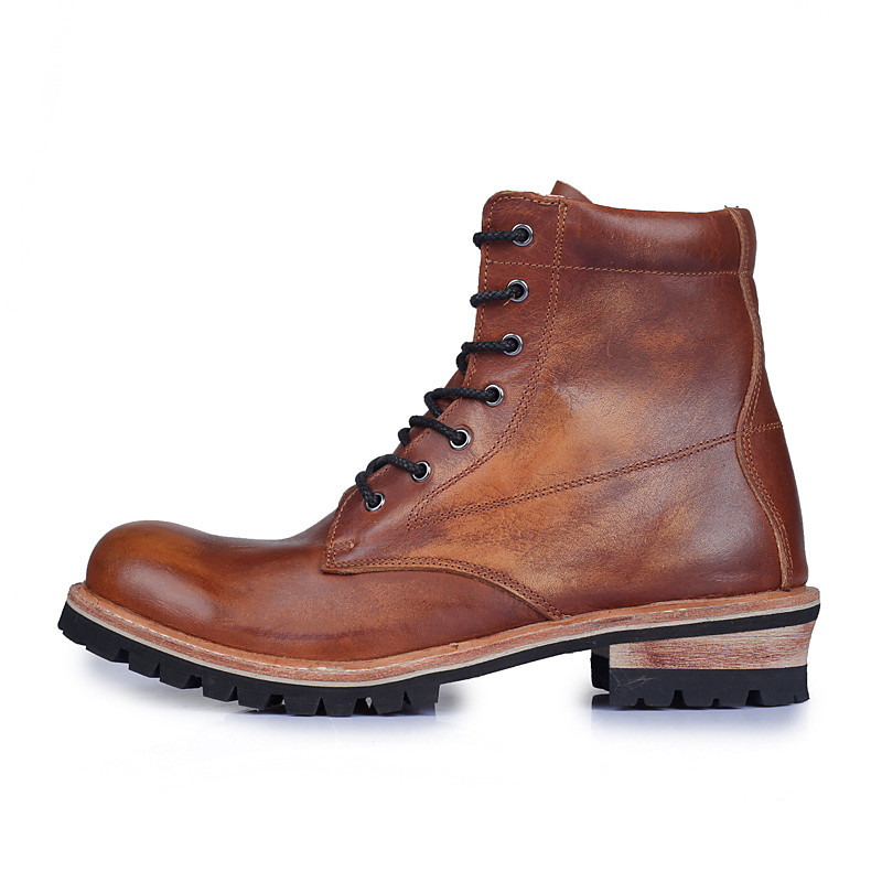 Men's Genuine Leather Lace-Up Work Boots – Durable Outdoor Combat Hiking Boots with Rugged Sole for Construction and Adventure
