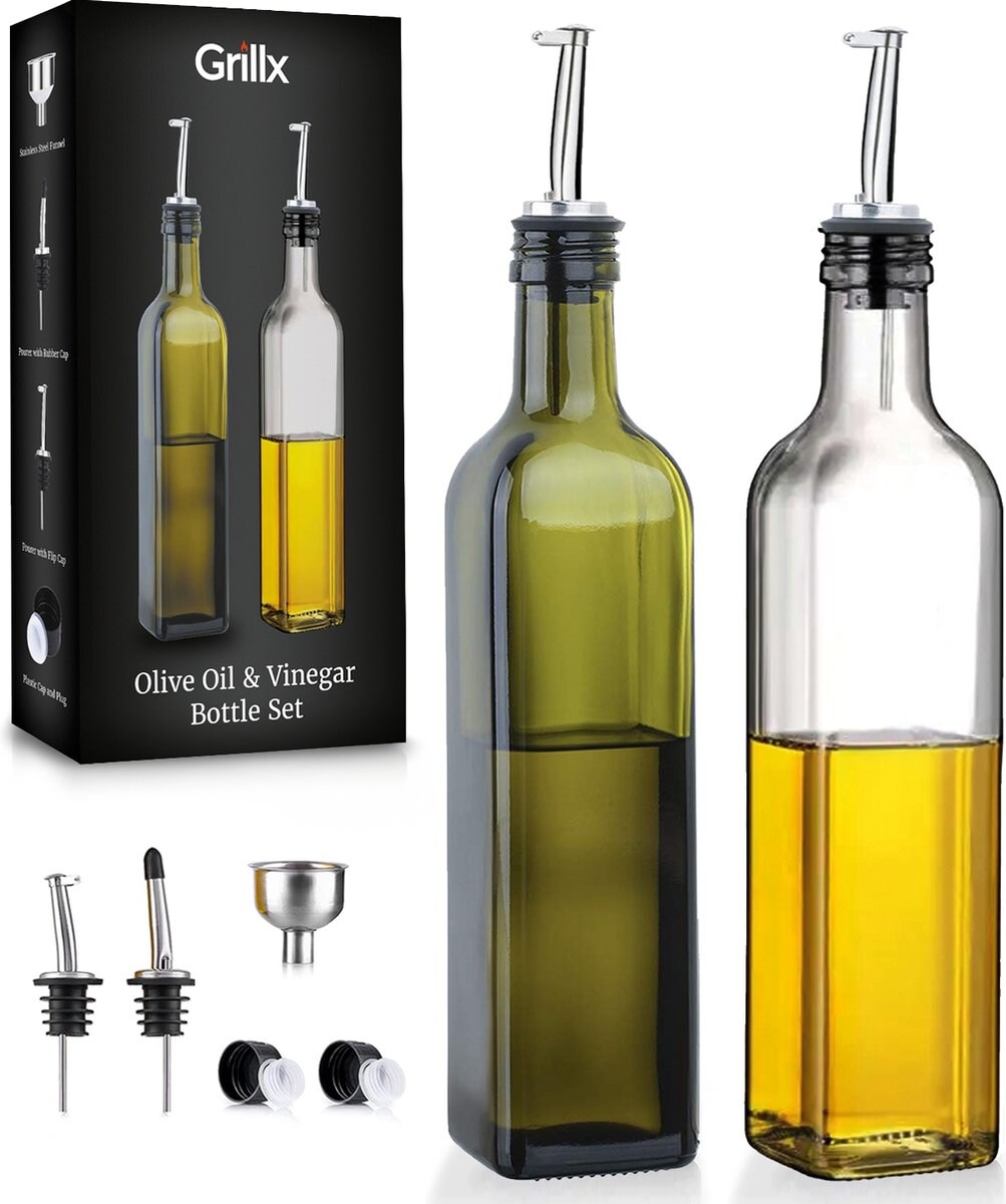 GrillX Olivenöl- und Essigflasche mit Ausgießer - 500ml - Inklusive Zubehör