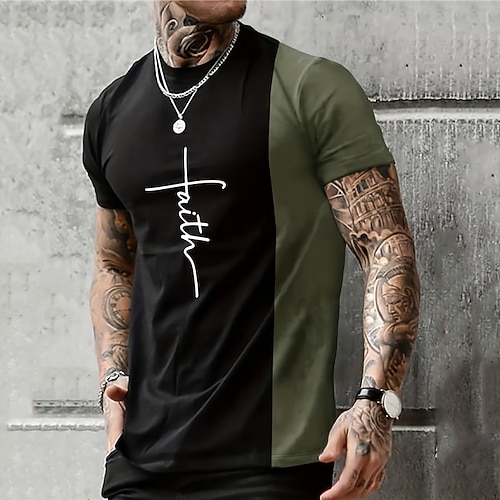 Maglietta a Blocco di Colore con Grafica della Bibbia per Uomini T-Shirt Cristiane Maglietta a Maniche Corte Maglietta a Stampa 3D Collo Giro Vintage Moda Designer Abbigliamento Sportivo Esterno