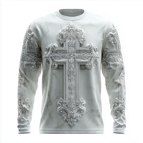 Per uomo Illusione ottica Croce Maglietta Manica Lunga maglietta Stampa 3D Girocollo Camicia Moda Esagerato 3D Streetwear Quotidiano Bianco 1 Bianco 2 Estate Primavera Autunno Abbigliamento S M L XL