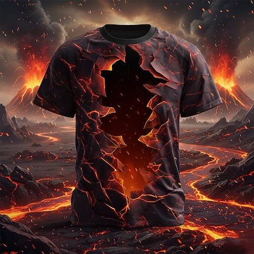 Per uomo Illusione ottica 3D Magma Maglietta Manica Corta maglietta Stampa 3D Girocollo Camicia Esagerato Designer Feste Quotidiano Ferie Rosso Rosso 2 Estate Primavera Tutte le stagioni Abbigliamento