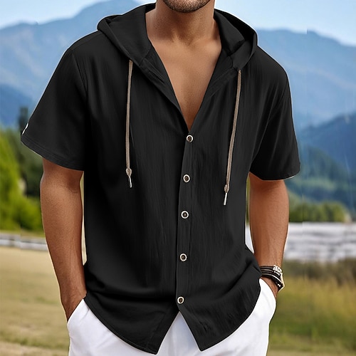 Per uomo Camicia Camicia Estiva Camicia casual Camicia da Spiaggia Camicia con Bottoni Nero Bianco Rosa Vino Blu marino Manica Corta Semplice Bavero Quotidiano Vacanza Tasca Abbigliamento Moda Casual