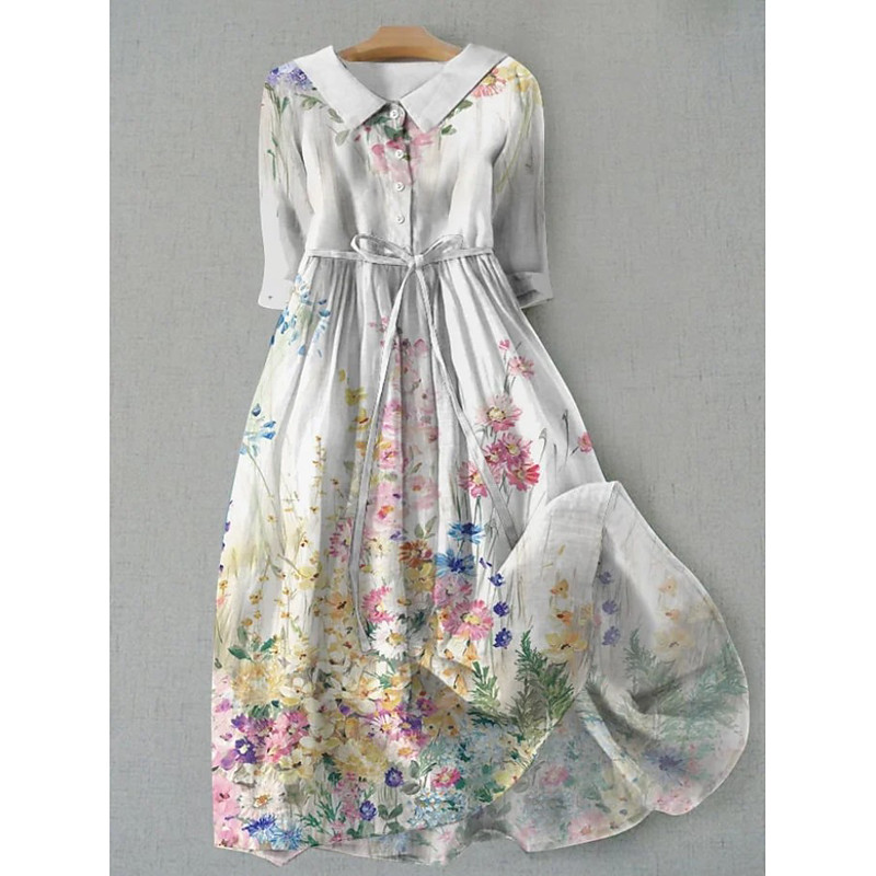 Women's Midi Dress Shift Dress Vacation Casual Boho Daily Holiday Tea Party Regular Fit Floral Graphic Half Sleeve Lapel White Pink Light Brown Blue Summer Spring