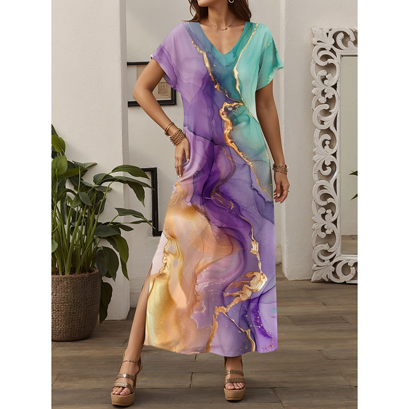 Women's Midi Dress Sundress A Line Dress Vacation Casual Boho Going out Loose Fit Ombre Graphic Geometric Short Sleeve V Neck Navy Blue Blue Sky Blue Purple Summer Spring Fall