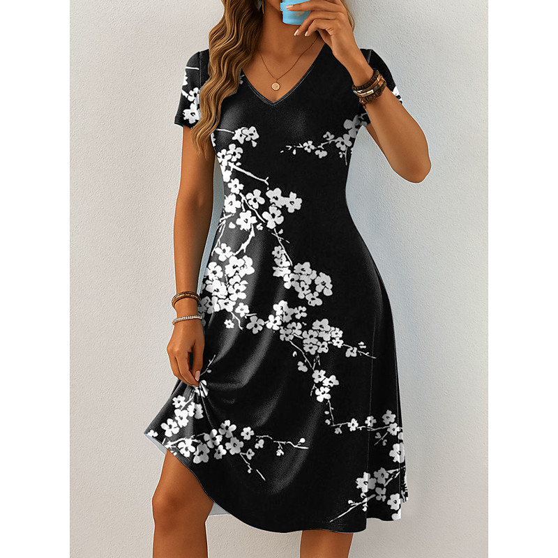 Women's Mini Dress Casual Dress T Shirt Dress Tee Dress Sundress A Line Dress Vacation Casual Boho Beach Regular Fit Floral Graphic Short Sleeve V Neck Black Blue Purple Green Summer Spring