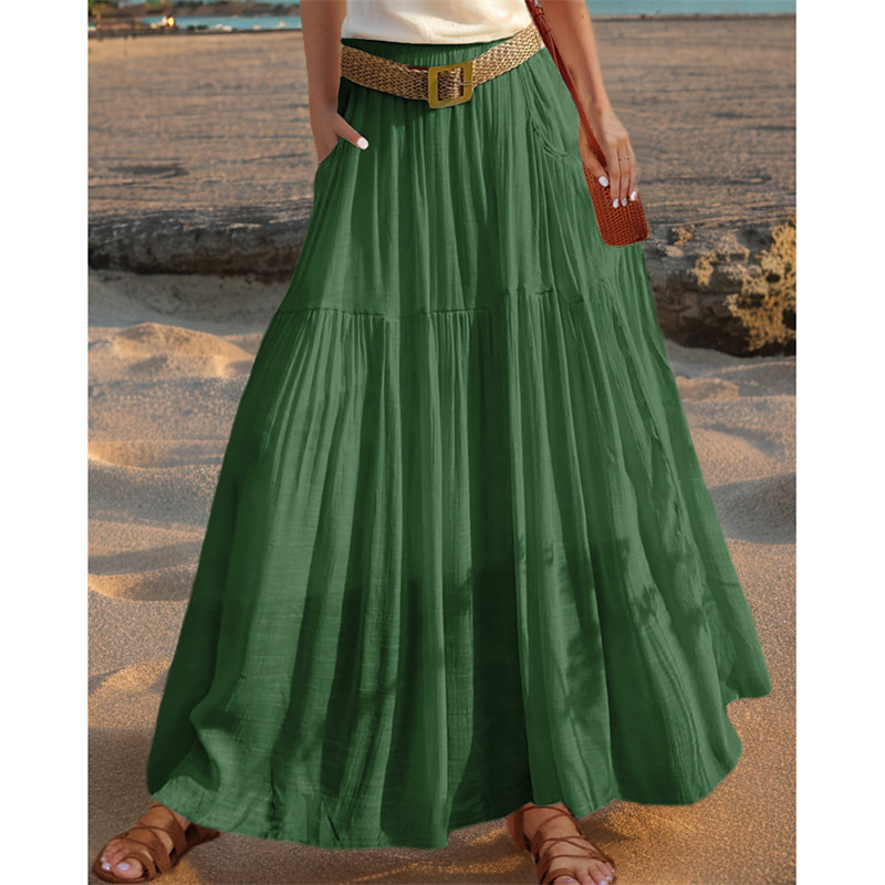Women's Asian Size Swing Linen Skirts Casual Summer Midi High Waist Skirts Solid Colored Ruched Pleated Pocket Micro-elastic Vacation Daily Apple Green Red Royal Blue Dark Green Spring, Fall, Winter