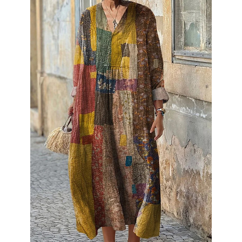Women's Midi Dress Sundress A Line Dress Vacation Casual Boho Party Holiday Beach Loose Fit Floral Graphic Geometric Long Sleeve V Neck Dark Red Pink Blue Purple Summer Spring Fall