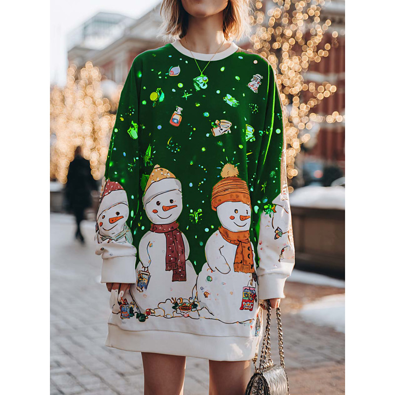 Christmas Women's Snowflake Mini Dress Shift Dress Athletic Dress Party Casual School Outdoor Loose Fit Graphic Long Sleeve Crew Neck Black Red Green Spring Fall Winter