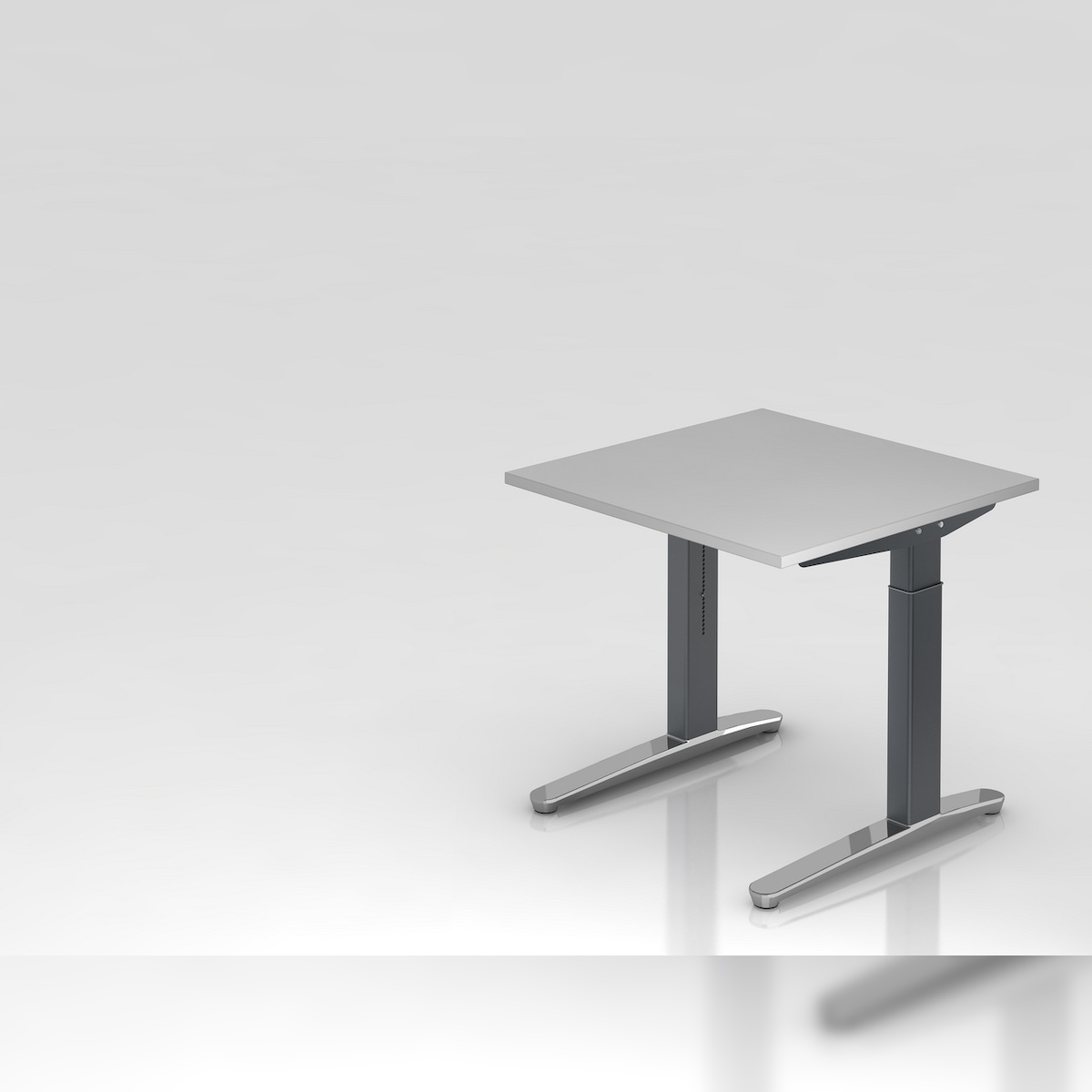 PROREGAL Schreibtisch Mika | Grau | Graues Gestell poliert | BxT 80x80cm | Arbeitshöhe 65-85cm | höhenjustierbar, 1cm Raster | C-Fuß-Gestell