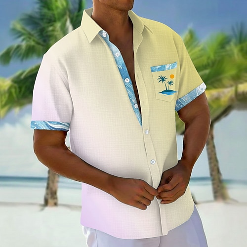 Per uomo Albero di Cocco Colore sfumato Piante Tropicali Camicia Camicie hawaiane Camicia Aloha Manica Corta Hawaiano Vacanza Ferie Estate Collo ripiegato Stampa 3D Una tasca anteriore Camicia tipo