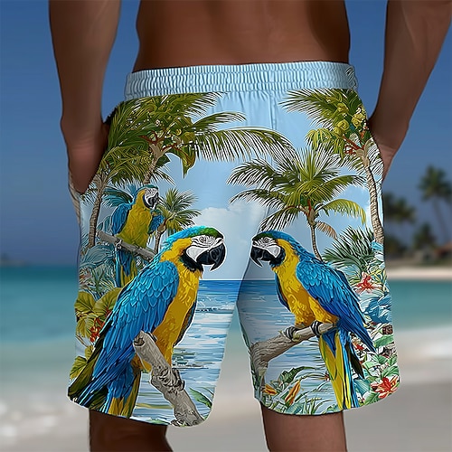 Per uomo Albero di Cocco Pappagallo Piante Tropicali Costumi da bagno Pantaloncini da mare Pantaloncini da Surf Misura del girovita medio Hawaiano Vacanza al Mare Tasche Laterali fodera in rete