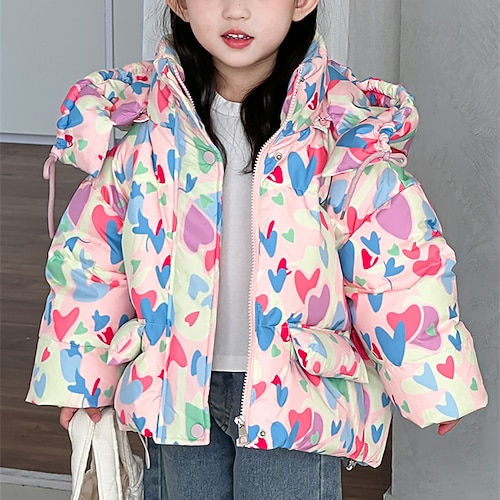 Kinder Mädchen Daunenjacke Daunenjacke Herz Sport Tasche warm halten Winddicht Outdoor Mantel Oberbekleidung 4-12 Jahre Winter Blau Rosa Rote