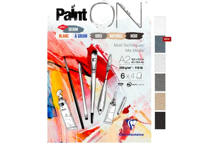 Paint-On Block A2 250gram MIX 6x4 Blätter Multi Technik, oben geklebt
