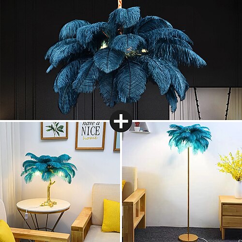 Lampadario a sospensione a LED, splendido lampadario extra large con bouquet di piume di struzzo bianche, romantico apparecchio di illuminazione a parete per ristorante e camera da letto (lampadina di ricambio in omaggio!).