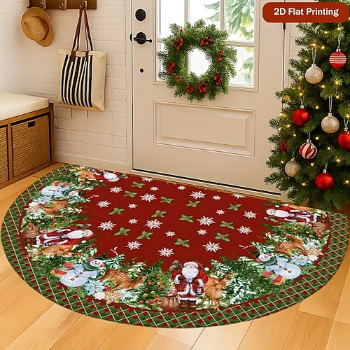 zerbino natalizio semicircolare, zerbino di benvenuto per le feste, resistente, antiscivolo, per l'ingresso, resistente allo sporco, per la casa, il portico, la camera da letto, l'arredamento festivo,