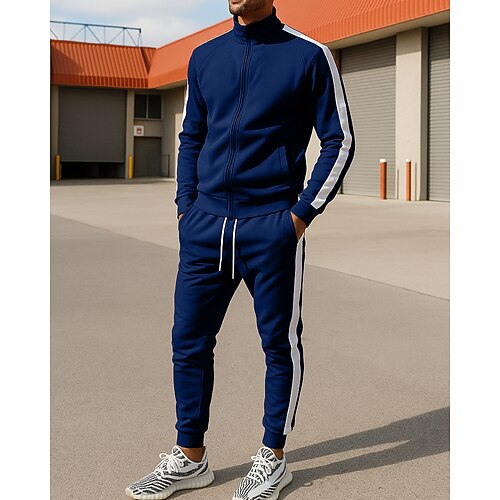 Per uomo Tuta da 2 pezzi Felpa con cappuccio Lounge Set di tute da ginnastica Con zip Blocco di colori Completo Abbigliamento Primavera Nero Blu Palestra Allenamento Corsa Vita Alta Leggero Di