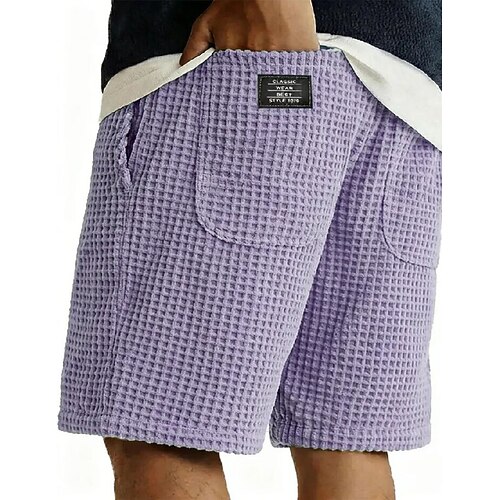 Per uomo Pantaloncini Waffle Shorts Pantaloncini casual Tasca Elastico in vita Puro Semplice Comodità Traspirante Lunghezza al ginocchio Casuale All'aperto Vacanza Vacanza Moda Nero Bianco