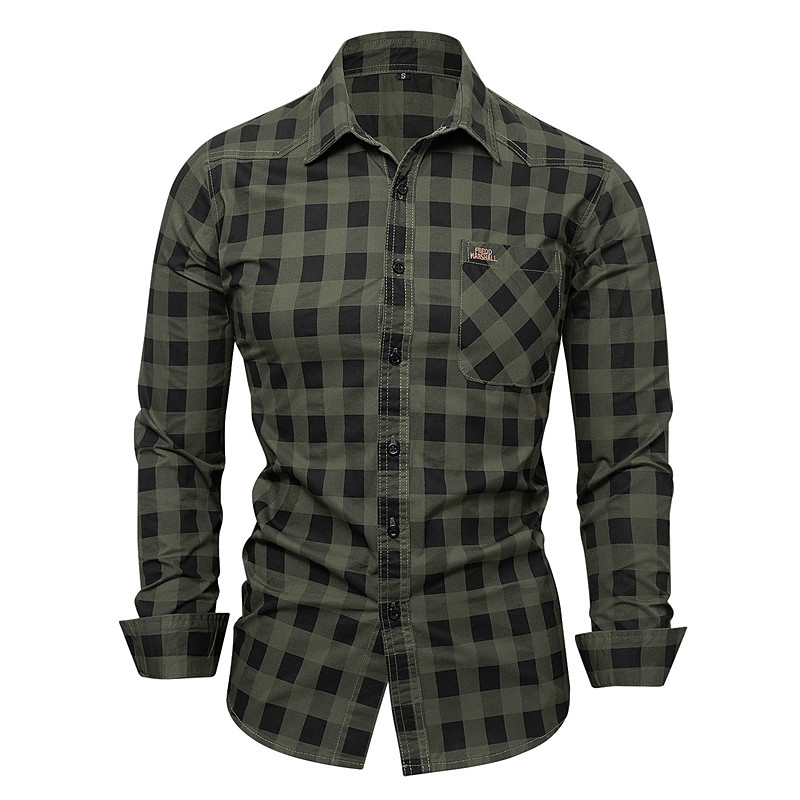 Men's Shirt Summer Shirt Casual Shirt Button Up Shirt khaki Army Green Long Sleeve Plaid Lapel Vacation Hawaiian Button-Down Clothing Apparel 100% Cotton Fashion Casual Comfortable